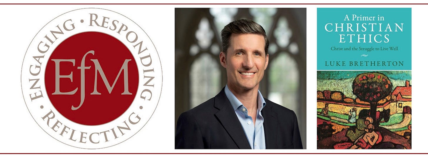 One of EfM’s new core texts for Year 4 of the classic program, is Luke Bretherton’s A Primer in Christian Ethics: Christ and the Struggle to Live Well. Bretherton, the Regius Professor of Moral and Pastoral Theology at Christ Church, University of Oxford is also a Canon at Christ Church Cathedral, Oxford.
